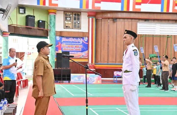 Dinas Kominfo Kota Sibolga | SIBOLGA – Mewakili Wali Kota Sibolga, Akhmad Syukri Nazry Penarik, Pemerintah Kota (Pemko) Sibolga melalui Staf Ahli Bidang Pemerintahan, Hukum, dan Politik, Bustanul Arifin, ST, MM, menghadiri dan membuka secara resmi Turnamen Badminton HTT Open Cup II Tahun 2026, yang digelar di Lapangan Olahraga Tri Ratna Sibolga, pada Senin (02/02/2026) sore.