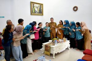 Dinas Kominfo Kota Sibolga | SIBOLGA – Keluarga Besar Pemerintah Kota (Pemko) Sibolga menggelar acara upah-upah dan doa bersama dalam rangka memperingati Hari Ulang Tahun (HUT) Wakil Ketua TP PKK Kota Sibolga, Ibu Lumsedia Sitompul, S.Pd., M.M., yang genap berusia 49 tahun. Perayaan berlangsung sederhana namun penuh kehangatan di Rumah Dinas Wakil Wali Kota Sibolga, pada Senin (24/11/2025) sore.