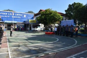 Dinas Kominfo Kota Sibolga | SIBOLGA — Kapolres Kota Sibolga, AKBP Eddy Inganta, S.H., S.I.K., M.H., bersama Wali Kota Sibolga, Akhmad Syukri Nazry Penarik, memimpin Apel Gelar Pasukan Operasi Kepolisian Terpusat “Lilin Toba 2025”, dalam rangka pengamanan perayaan Natal 2025 dan Tahun Baru 2026 (Nataru) di Kota Sibolga. Apel tersebut dilaksanakan di Lapangan Mako Satlantas Polres Sibolga, pada Jumat (19/12/2025) pagi.