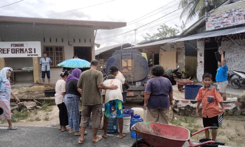 Selain penyediaan kebutuhan pangan, Pemko Sibolga juga melakukan pendistribusian air bersih ke sejumlah lokasi, antara lain Jalan Sakura, Gang Perjuangan (belakang SMP Negeri 5), Pondok Reformasi, serta Posko Gedung Nasional Sibolga.