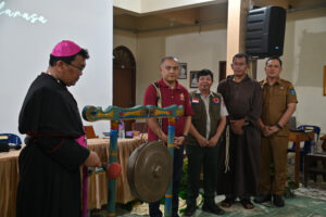 Kegiatan dilanjutkan dengan pemukulan gong sebagai tanda resmi dimulainya Program EA 2023–2025 Pemulihan Pasca Bencana Banjir dan Longsor Sumatera oleh Caritas Indonesia dan Keuskupan Sibolga.