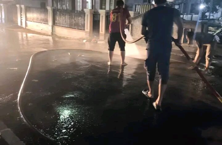 Proses penanganannya dilakukan di beberapa titik yang terdampak penimbunan dan pengendapan material. Petugas bekerja di tengah kondisi jalan yang masih basah dengan pencahayaan terbatas, namun tetap mengedepankan keselamatan kerja serta ketelitian dalam proses pembersihan.