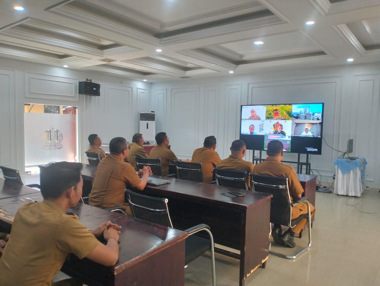 Wakil Wali Kota Sibolga, Pantas Maruba Lumban Tobing, Sekretaris Daerah Kota Sibolga, Drs. Herman Suwito, M.M., bersama jajaran Organisasi Perangkat Daerah (OPD) terkait mengikuti rakor tersebut.