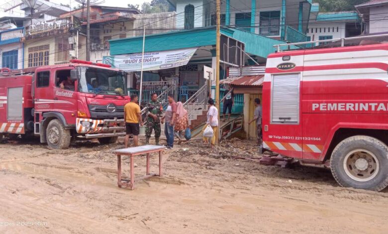 Dinas Kominfo Kota Sibolga | SIBOLGA – Pemerintah Kota (Pemko) Sibolga melalui Dinas Satuan Polisi Pamong Praja dan Pemadam Kebakaran (Damkar) Kota Sibolga menurunkan dua (2) unit mobil pemadam kebakaran untuk membantu proses evakuasi korban di kawasan Mesjid Budi Sehati, Kecamatan Sibolga Kota, pada Selasa (02/12/2025).