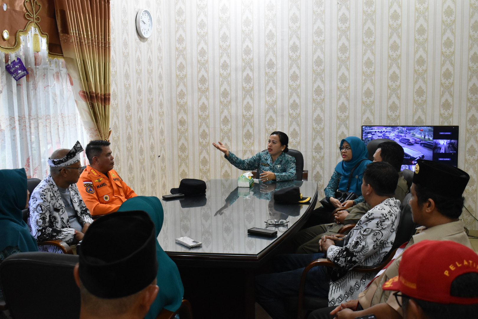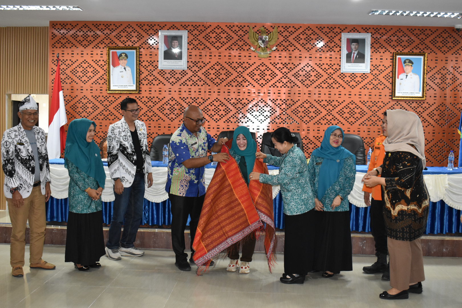 Acara ditutup dengan penyerahan bantuan secara simbolis, penyerahan kain ulos sebagai simbol penghormatan dan persaudaraan, serta sesi foto bersama yang dihadiri jajaran OPD, pengurus PKK, Ketua Dharma Wanita Kota Sibolga, dan perwakilan BPBD dari kedua daerah.