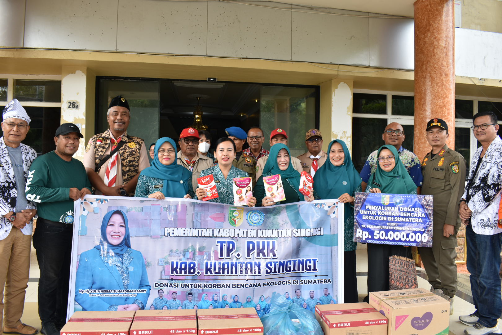 Bantuan kemanusiaan sebesar Rp50 juta (Lima Puluh Juta Rupiah) tersebut, selain berupa uang tunai juga disertai bantuan susu untuk ibu hamil dan bayi, diterima oleh Staf Ahli TP-PKK Kota Sibolga, Ny. Lumsedia Pantas Lumban Tobing, bersama Asisten Administrasi Pembangunan dan Umum Sekretariat Daerah Kota Sibolga, Denni Aprilsyah Lubis, S.T., M.Kom.