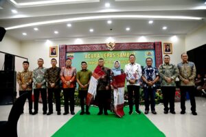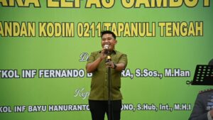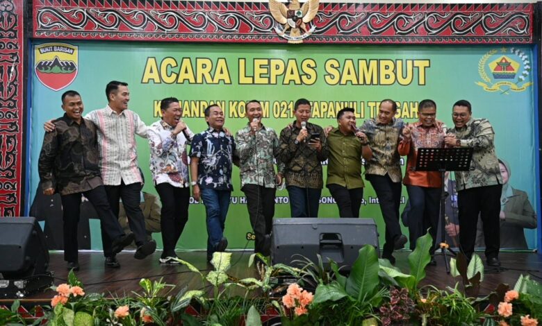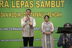 Wali Kota Sibolga, Akhmad Syukri Nazry Penarik, bersama Wakil Wali Kota Sibolga, Pantas Maruba Lumban Tobing, didampingi Wakil Ketua Tim Penggerak PKK Kota Sibolga, Ny. Lumsedia Pantas Lumban Tobing, menghadiri acara Lepas Sambut Komandan Kodim 0211/TT dari Letkol Inf Fernando Batubara, S.Sos., M.Han., kepada Letkol Inf Bayu Hanuranto Wicaksono, S.Hub.Int., M.H.I. Acara ini berlangsung di Aula Graha Bank Indonesia (BI) Sibolga, pada Senin (10/11/2025) malam.