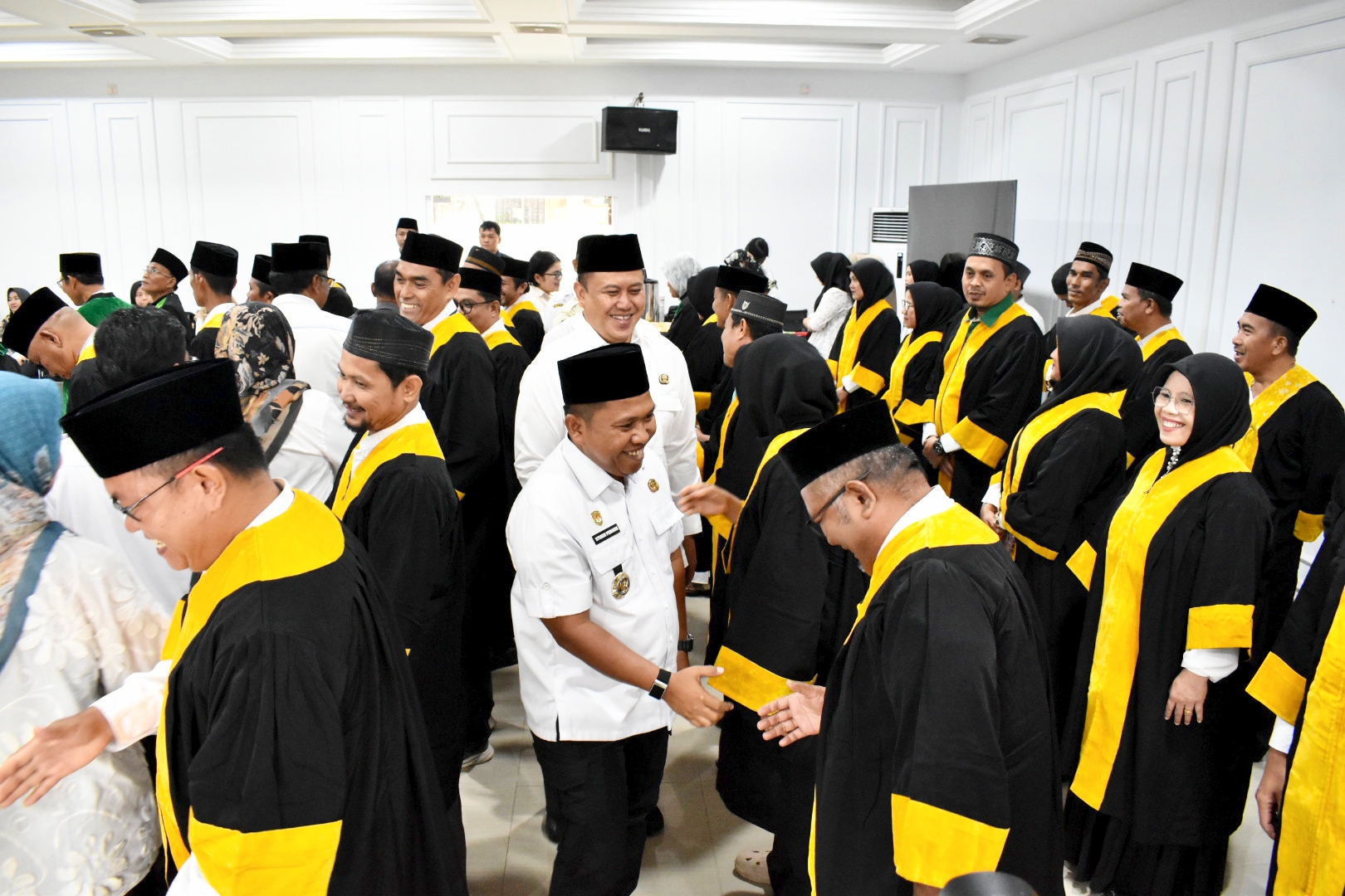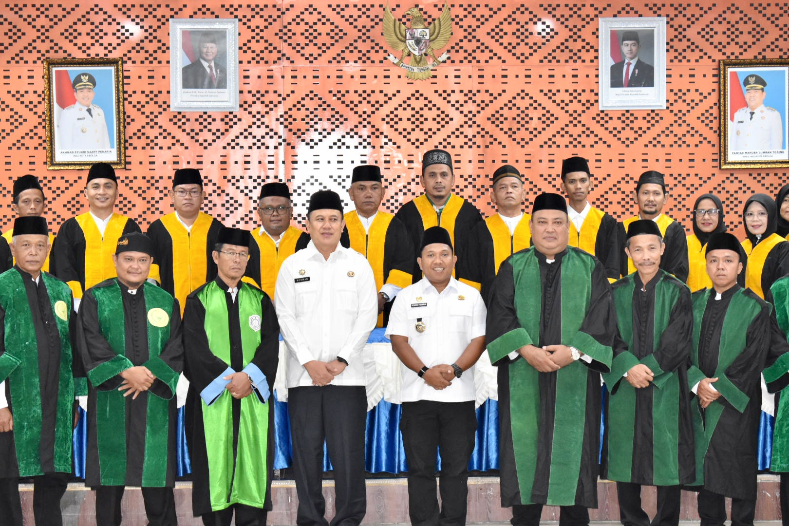Pelantikan yang berlangsung khidmat ini turut dihadiri Sekretaris Daerah Kota Sibolga, Drs. Herman Suwito, M.M., para pimpinan Organisasi Perangkat Daerah (OPD), serta para camat se-Kota Sibolga. Prosesi ditandai dengan penyematan toga secara simbolis oleh Wali Kota kepada perwakilan Dewan Hakim.