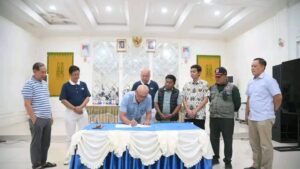 Dinas Kominfo Kota Sibolga | SIBOLGA – Wali Kota Sibolga, Akhmad Syukri Nazry Penarik, didampingi Sekretaris Daerah Kota Sibolga, Drs. Herman Suwito, MM, serta Kepala JFT Analis Kebencanaan Ahli Madya BNPB, Gatot Satria Wijaya, melaksanakan penandatanganan Surat Perjanjian Kerja pembangunan perumahan tetap (huntap) pascabencana di Kota Sibolga.