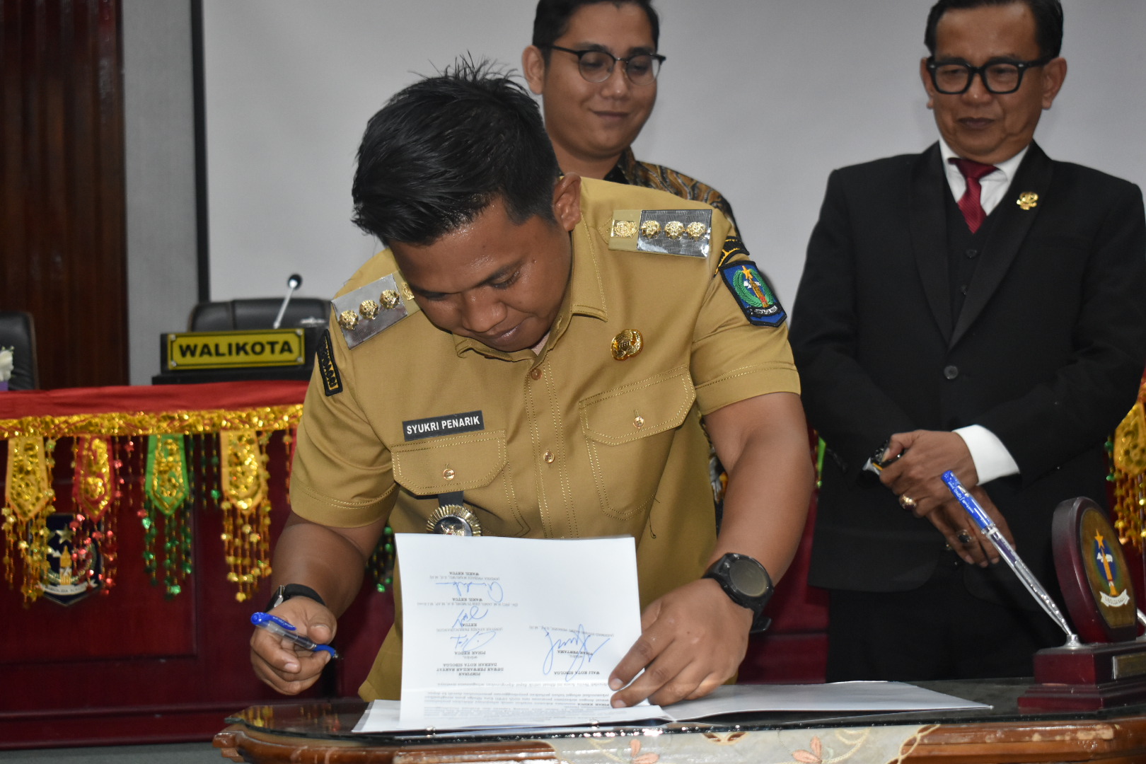 Dinas Kominfo Kota Sibolga | SIBOLGA – Wali Kota Sibolga, Akhmad Syukri Nazry Penarik, bersama Wakil Wali Kota Sibolga, Pantas Maruba Lumban Tobing, menghadiri Rapat Paripurna Dewan Perwakilan Rakyat Daerah (DPRD) Kota Sibolga dalam rangka penyampaian Laporan Keterangan Pertanggungjawaban (LKPJ) Wali Kota Sibolga Tahun Anggaran 2025. Kegiatan ini berlangsung di Ruang Rapat Paripurna DPRD Kota Sibolga, pada Senin (30/03/2026) siang.