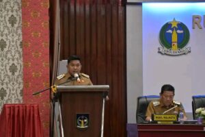 Dinas Kominfo Kota Sibolga | SIBOLGA – Wali Kota Sibolga, Akhmad Syukri Nazry Penarik, bersama Wakil Wali Kota Sibolga, Pantas Maruba Lumban Tobing, menyampaikan Rancangan Peraturan Daerah (Ranperda) tentang Anggaran Pendapatan dan Belanja Daerah (APBD) Tahun Anggaran 2026, dalam rapat paripurna DPRD Kota Sibolga yang digelar di Ruang Rapat Utama Kantor DPRD Kota Sibolga, pada Senin (03/11/2025) sore.
